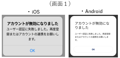 現在、一部の方のトモズアプリにおいて、「アカウントが無効になりました」というエラーメッセージが出て、アプリが利用できない事象が発生しております(画面1)。